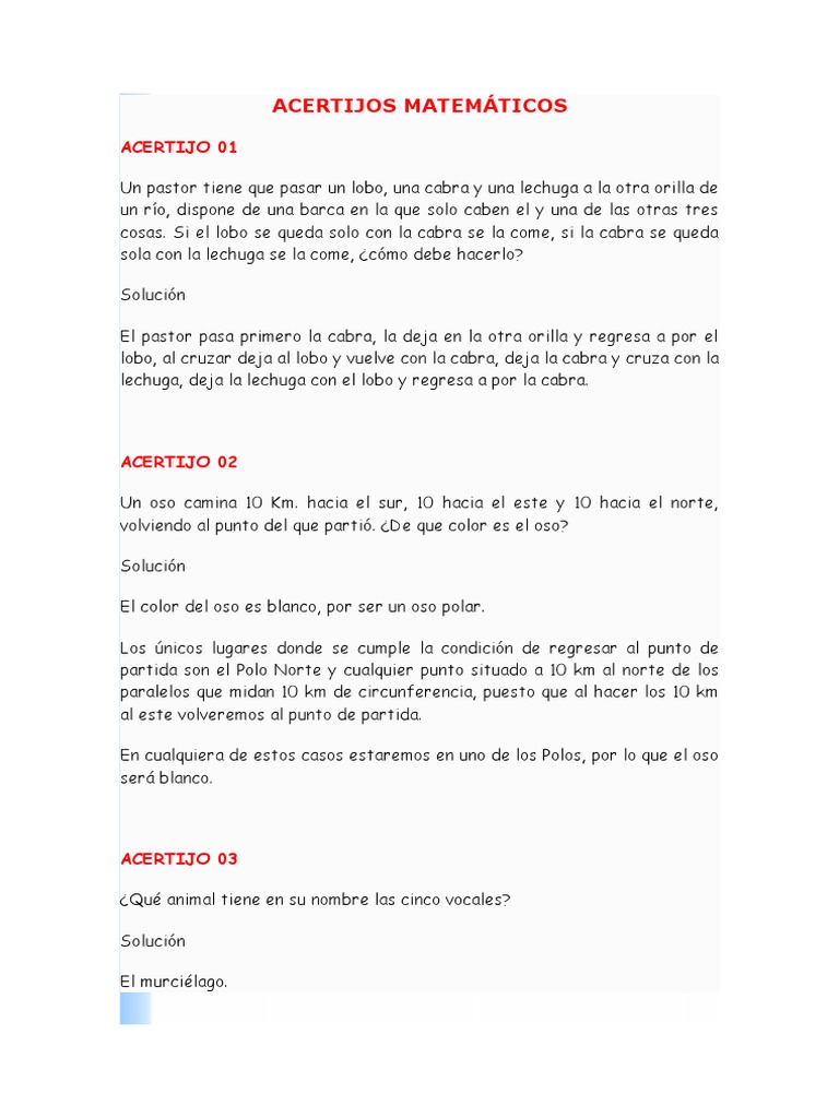 Acertijos Matematicos 01 Pdf Oveja Vino